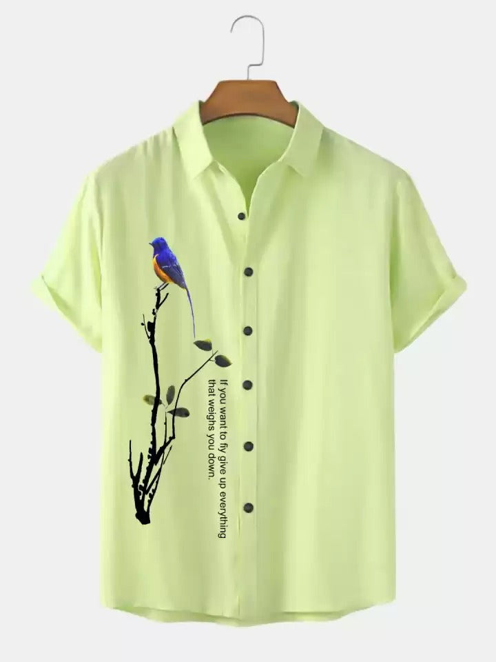 Men Regular Fit Printed Cut Away Collar Casual Shirt